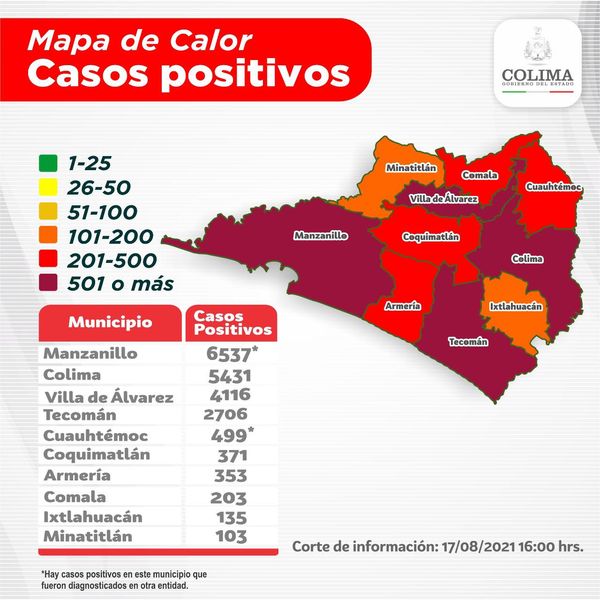 La Secretaría de Salud informó que las 11 defunciones ocurrieron en 8 hombres y 3 mujeres, con edades entre los 35 y más de 65 años, que estaban hospitalizados graves; 6 eran originarios de Manzanillo y 5 de Colima.