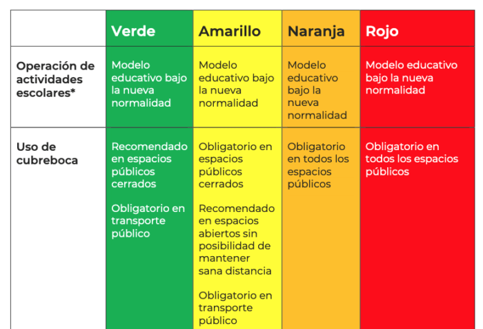 En el documento se establece que “la actividad educativa no se sujeta a cierres de acuerdo con nivel de riesgo epidémico, sino que se llevará a cabo de acuerdo con lo establecido en la ‘Guía para el regreso responsable y ordenado a las escuelas’” emitida por la SEP y la Secretaría de Salud.