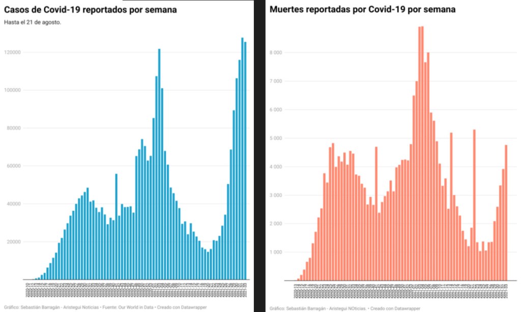 Se trata de la sexta semana con un incremento en el número de muertes a causa de la pandemia.