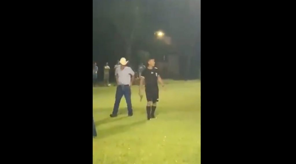 En un video de redes sociales de Honduras, se aprecia a un árbitro que usa una pistola para frenar un intento de agresión en su contra.