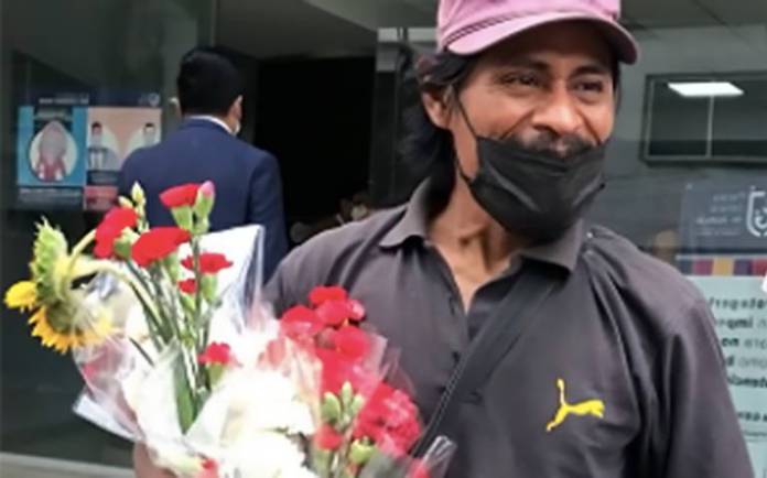 El señor, originario de Michoacán, se para en la entrada de la institución con un ramo de flores en mano, las cuales reparte a todo aquel que llega al lugar, pero ¿cuál la motivación que hay detrás de este detalle?