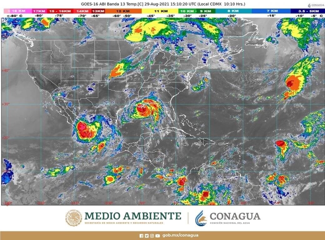 Durante las próximas horas, favorecerá lluvias puntuales torrenciales (de 150.1 a 250 milímetros [mm]) en Nayarit y Sinaloa; intensas (de 75.1 a 150 mm) en regiones de Baja California Sur, Durango, Guerrero, Jalisco, Michoacán y Sonora; muy fuertes (de 50.1 a 75 mm) en zonas Chihuahua, Colima y Estado de México; fuertes (de 25.1 a 50 mm) en localidades de Aguascalientes, Ciudad de México, Guanajuato, Hidalgo, Querétaro y Zacatecas.