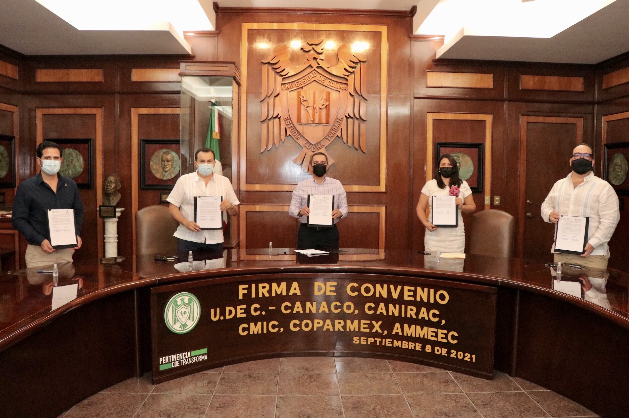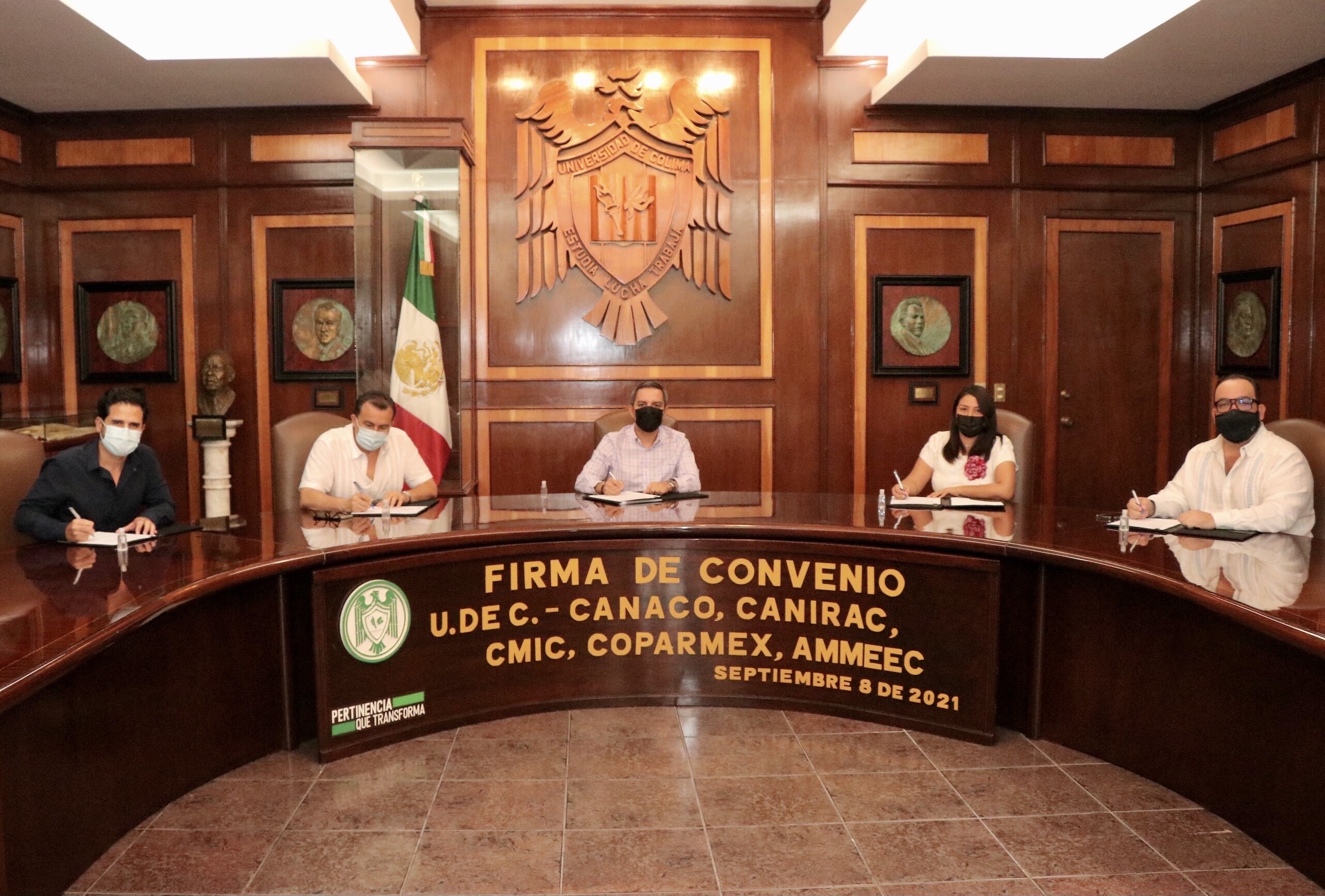 Con el propósito de fortalecer la colaboración que ya existe entre la Universidad de Colima y la sociedad, este miércoles la Casa de Estudios firmó convenios de colaboración con las cámaras empresariales del estado para sumar esfuerzos, voluntades y capacidades, dijo el rector Christian Jorge Torres Ortiz Zermeño, “que nos harán mejor y nos ayudarán a revertir la difícil situación que vive el estado hoy en día”.
