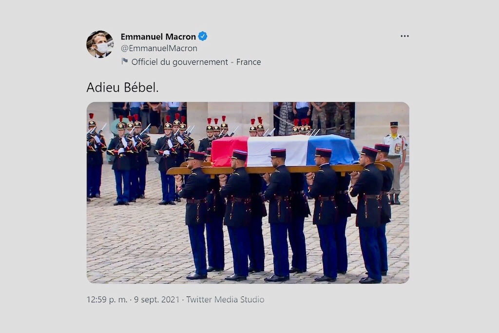 En su cuenta de la red social Twitter publicó un mensaje de apenas dos palabras: “Adieu, Bébel” (“Adiós Bébel”, por el apodo del actor), acompañado de un conmovedor video que fue reproducido en todo el mundo.