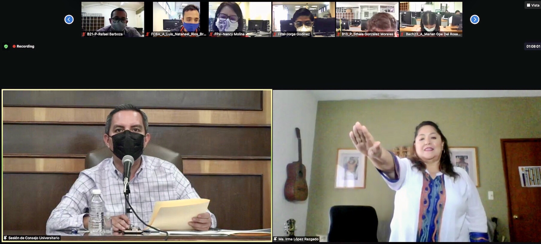Durante la sesión extraordinaria de este lunes 20, realizada de manera virtual, el pleno del Consejo Universitario, máximo órgano de gobierno de la Universidad de Colima aprobó la creación de los programas Ideas y Lazos, la Comisión de Seguridad y Protección Civil, el cambio de Dirección General de Planeación y Desarrollo Institucional a Coordinación y el nombramiento de María Irma López Razgado como integrante del Consejo Ciudadano de Radiodifusión de esta casa de estudios.