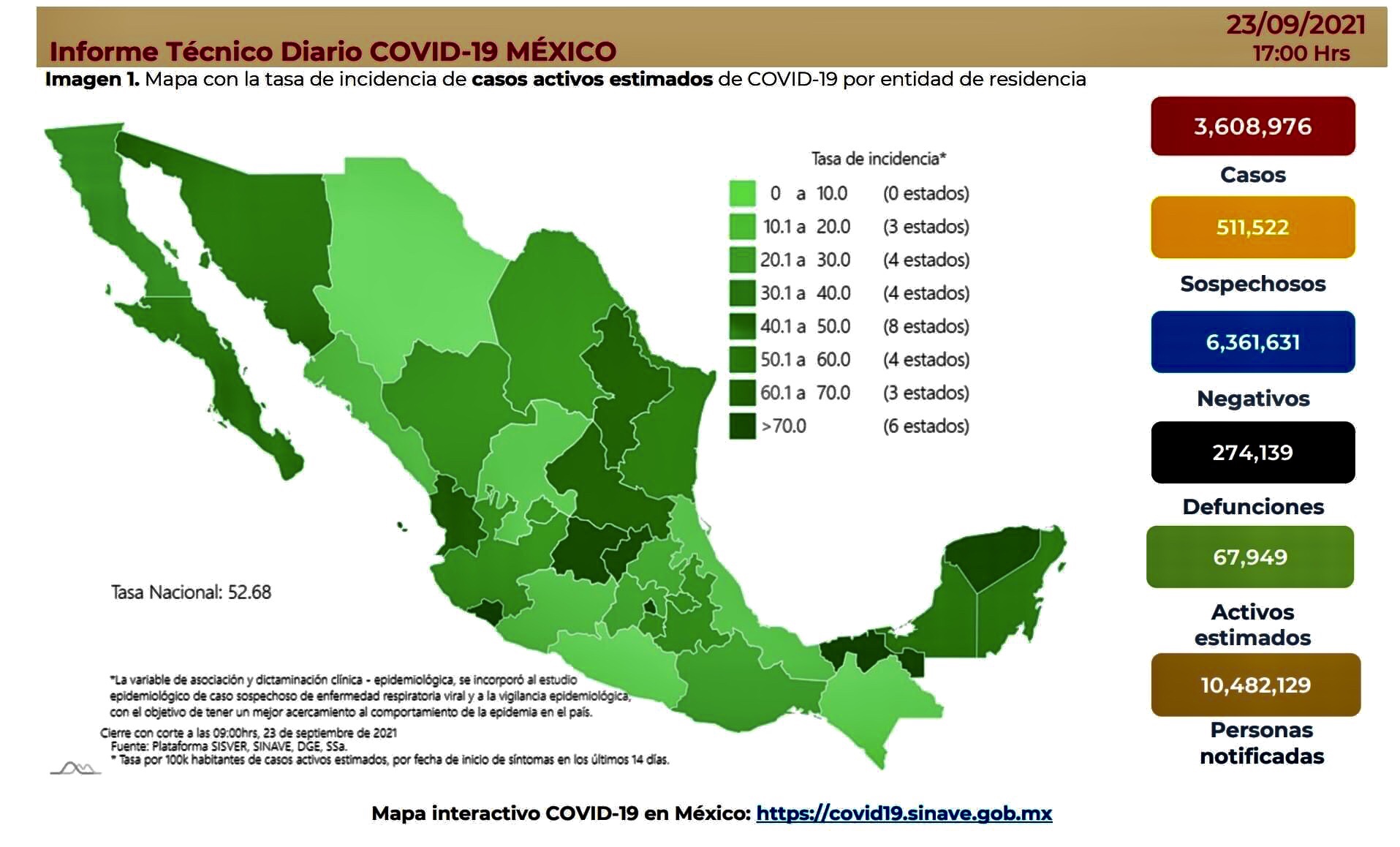 La Secretaría de Salud informó este jueves que México suma 3 millones 608 mil 976 casos y 274 mil 139 muertes por esta causa.