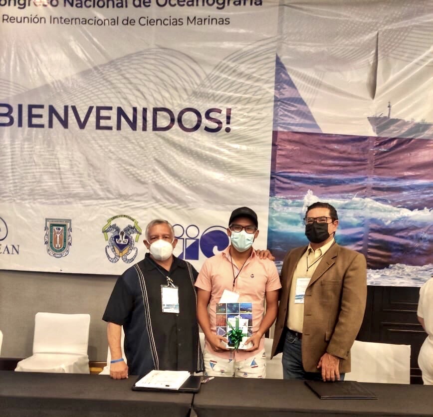 Raziel Meza Yáñez, del noveno semestre de Oceanología de la Facultad de Ciencias Marinas (FACIMAR) de la Universidad de Colima, obtuvo el premio de mejor ponencia de licenciatura durante su participación en el XXI Congreso Nacional de Oceanografía, que se realizó de manera híbrida del 20 al 25 de septiembre en Ensenada, Baja California.