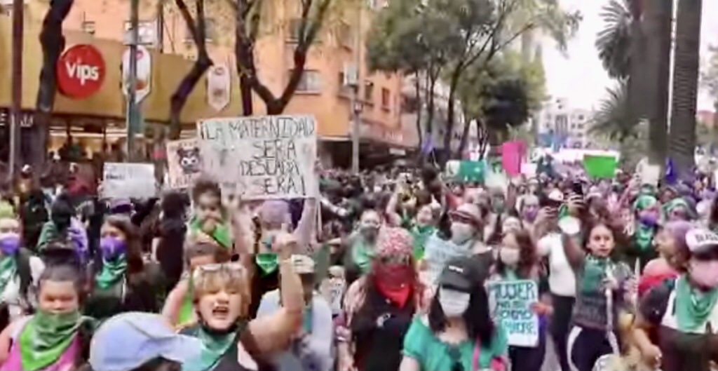 Contingentes feministas marchan en CDMX por el Día de Acción Global por el Aborto Legal.