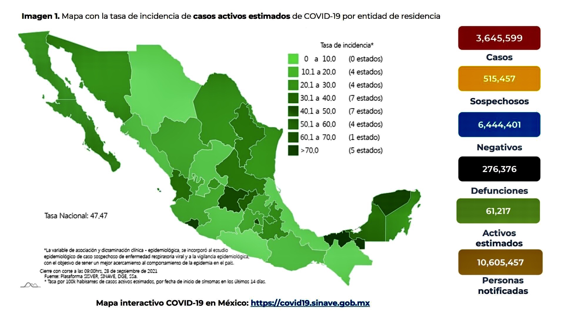 La Secretaría de Salud informó este martes que México suma 3 millones 645 mil 599 casos y 276 mil 376 muertes por COVID-19.