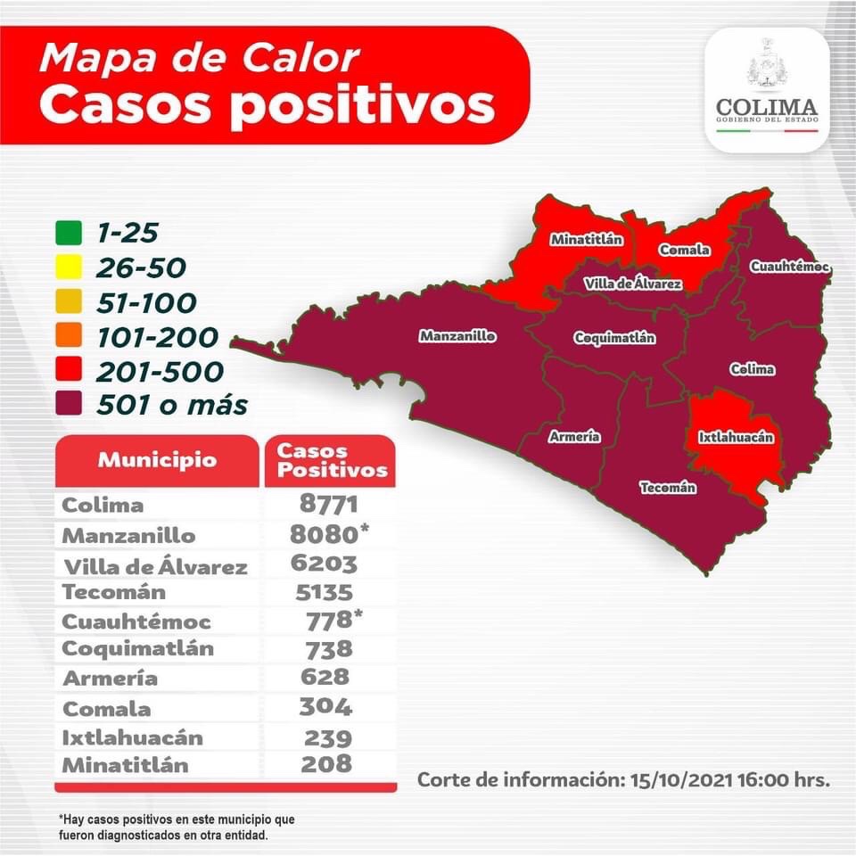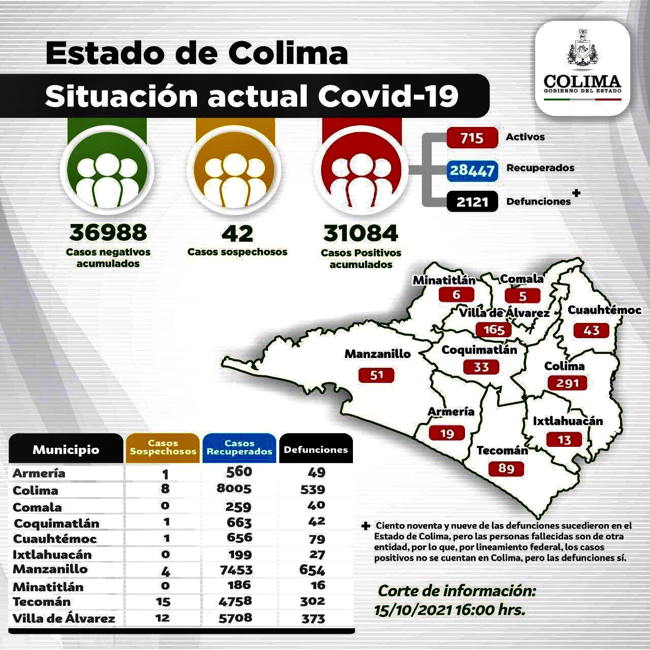 Registra Colima 45 casos nuevos y 3 decesos por Covid-19, este viernes.