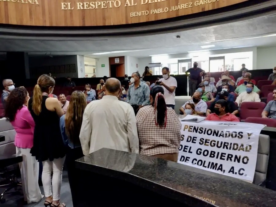 Un grupo de diputadas y diputados atendieron en el recinto oficial del Congreso del Estado a pensionados y jubilados de la Policía Estatal, a quienes no se les cumplió el compromiso de que se les pagarían las quincenas que les adeuda el Gobierno estatal.