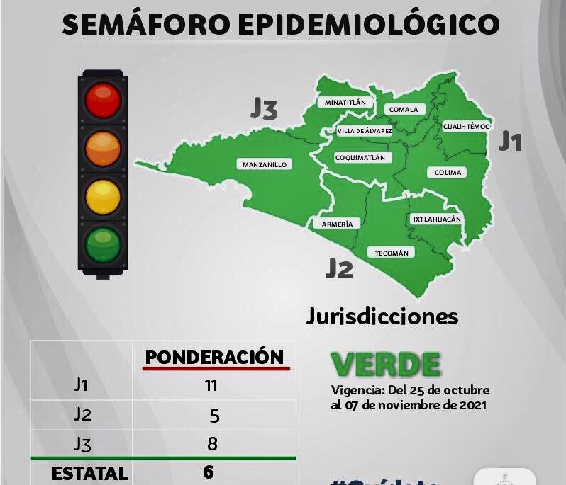 Pasa Colima a semáforo epidemiológico verde; el riesgo descendió 6 puntos.