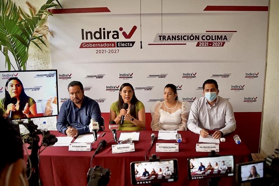 Acompañada por la C.P. Fabiola Verduzco Aparicio, el Ing. Eduardo Jurado Escamilla y el C.P. Víctor Torrero Enríquez, integrantes del equipo de Transición Colima, la gobernadora electa expuso que si bien el avance del proceso de entrega-recepción es de un 70 por ciento, hay rubros en el sistema, de los que el gobierno saliente no ha publicado la información y por lo tanto se desconoce. Reiteró su compromiso con la sociedad colimense de que se hará una revisión profunda de la situación financiera del estado, aseveró que una vez iniciando su gobierno se transparentará e informará lo que está sucediendo, pues encabezará un gobierno que se regirá “por la honestidad, la transparencia, la austeridad y el compromiso con Colima”.