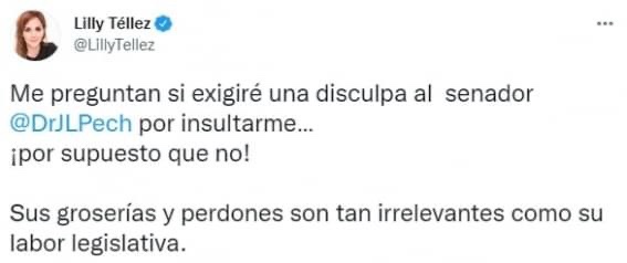 Tras el insulto, la senadora Téllez dijo que las groserías de Pech son tan irrelevantes como su labor legislativa.