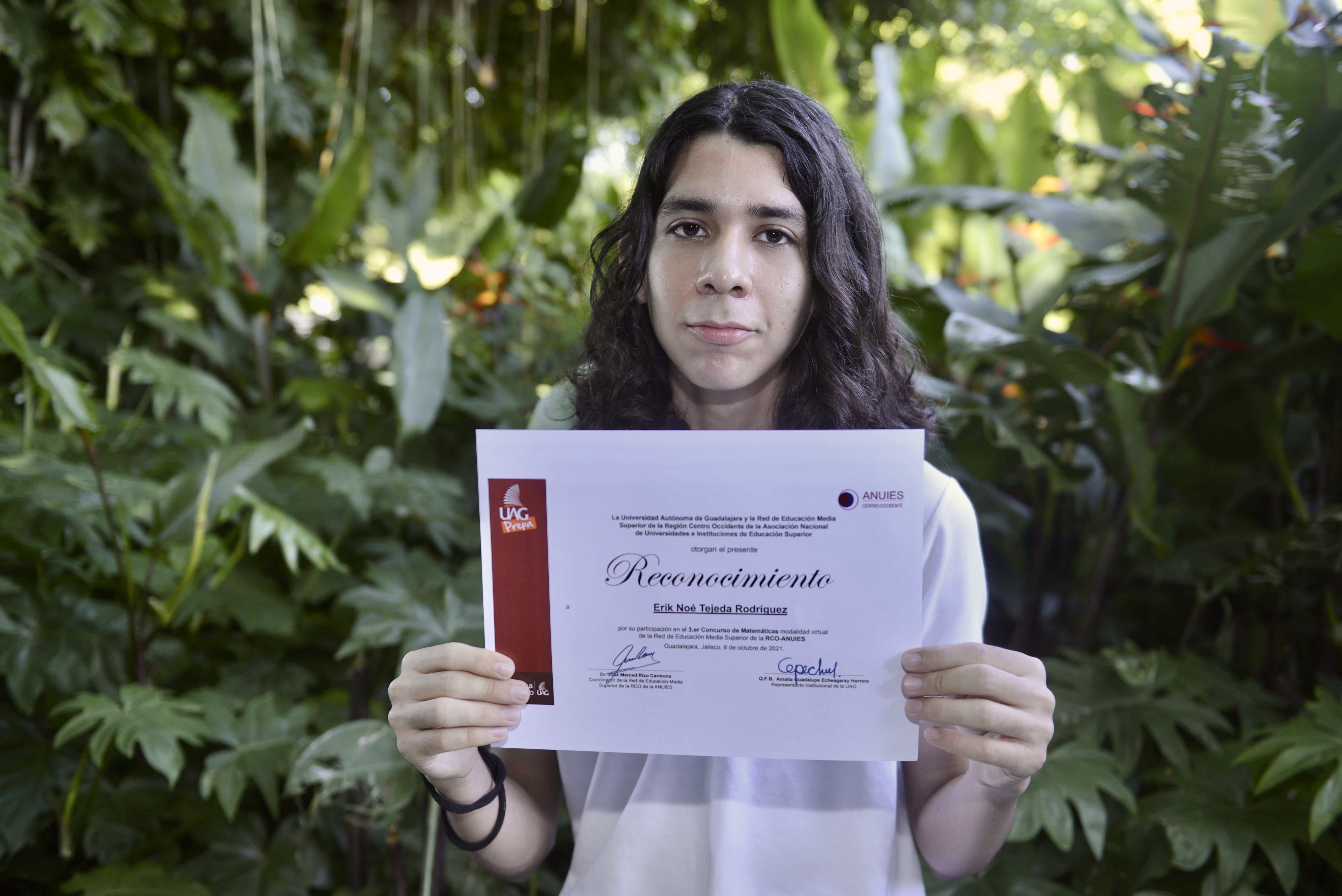 El estudiante de quinto semestre del Bachillerato 20 de la Universidad de Colima, campus Tecomán, Erik Noé Tejeda Rodríguez ganó una mención honorífica en el Tercer Concurso de Matemáticas, modalidad virtual, de la Red de Educación Media Superior de la Región Centro Occidente de la Asociación Nacional de Universidades e Instituciones de Educación Superior (RCO-ANUIES), en días pasados.