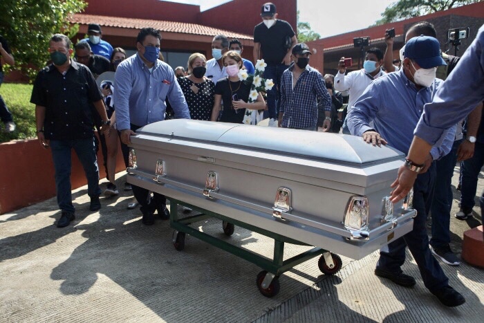 Los restos del joven -quien resultó muerto el viernes tras una persecución de policías de Cuatitlán Izcalli, Estado de México- fueron acompañados por amigos cercanos y familiares, además de sus padres y hermanas quienes colocaron en el féretro un sombrero que era propiedad del actor, además de un rosario y un jersey de fútbol.