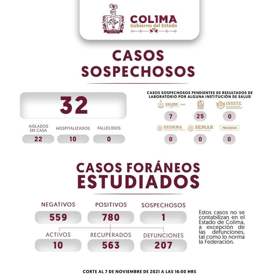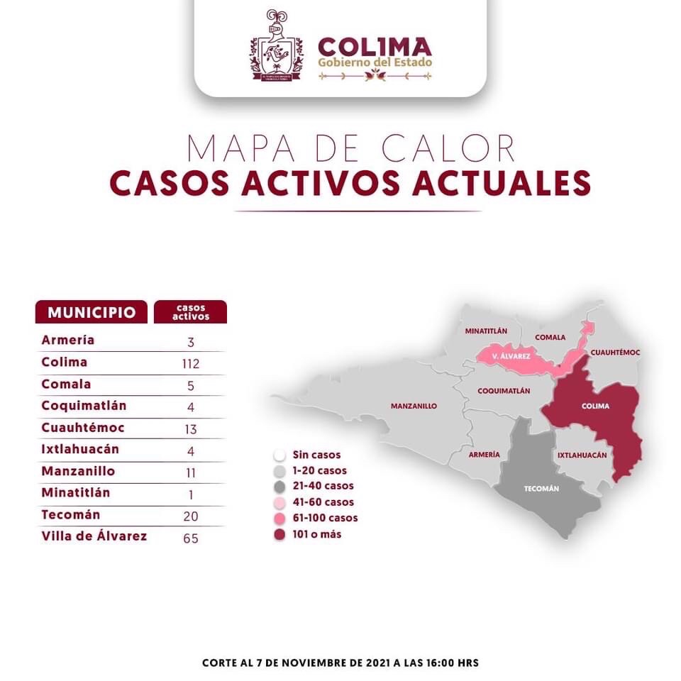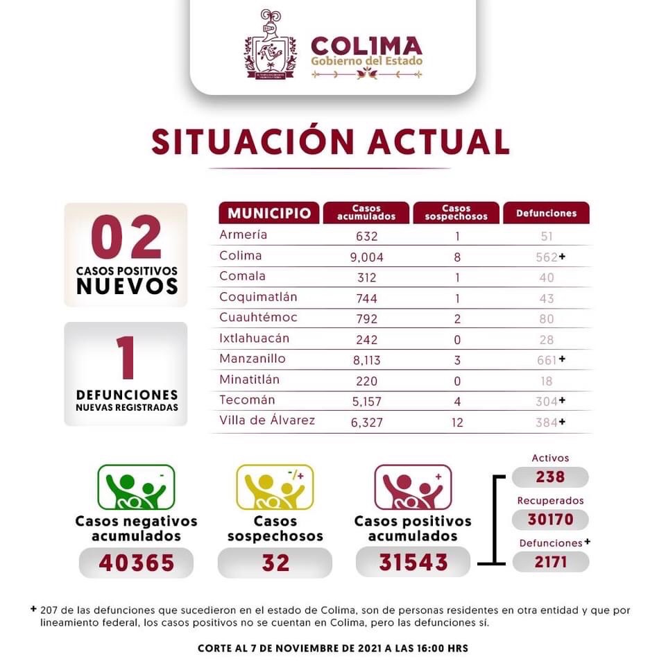 Este domingo Colima registró 2 casos nuevos y 1 deceso por Covid-19.