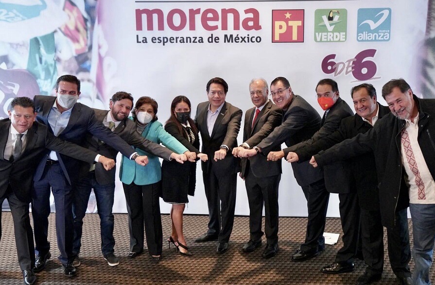 De cara a las elecciones de 2022, los dirigentes nacionales de Morena, Mario Delgado; del Partido Verde Ecologista de México (PVEM), Karen Castrejón; y del Partido del Trabajo (PT), Alberto Anaya, refrendaron su alianza, y afirmaron que unidos ganarán las 6 gubernaturas que están en juego, así publicó El Universal en su página web.