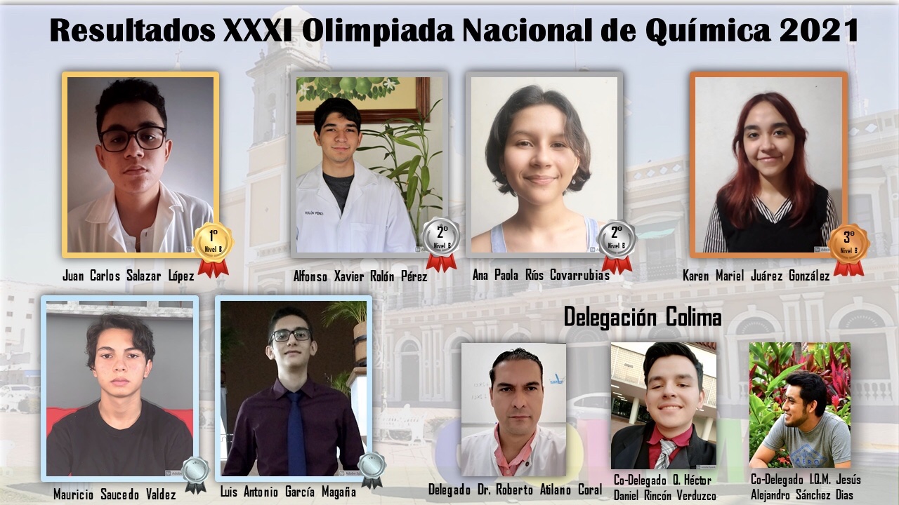 Cuatro alumnos del Bachillerato 4 de la Universidad de Colima, dos mujeres y dos hombres, obtuvieron medallas en la edición 31 de la Olimpiada Nacional de Química, que organizó de manera virtual la Academia Mexicana de Ciencias (AMC) del 14 al 22 de este mes de noviembre, y que tiene como objetivo básico fomentar el interés de los jóvenes por la química para desarrollar su gusto por la investigación científica.