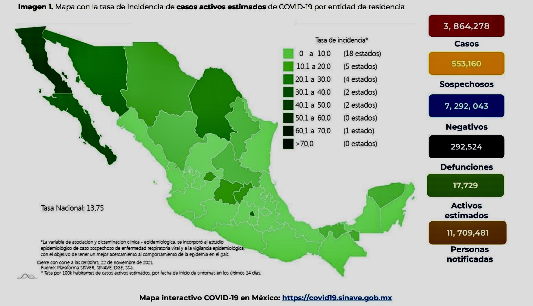 La Secretaría de Salud informó este lunes que Méxicosuma 3 millones 864 mil 278 casos y 292 mil 524 muertes por COVID-19.