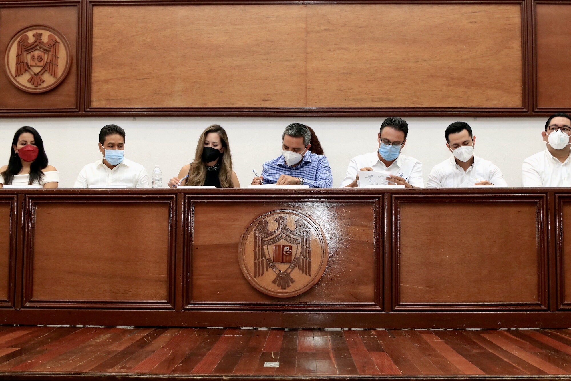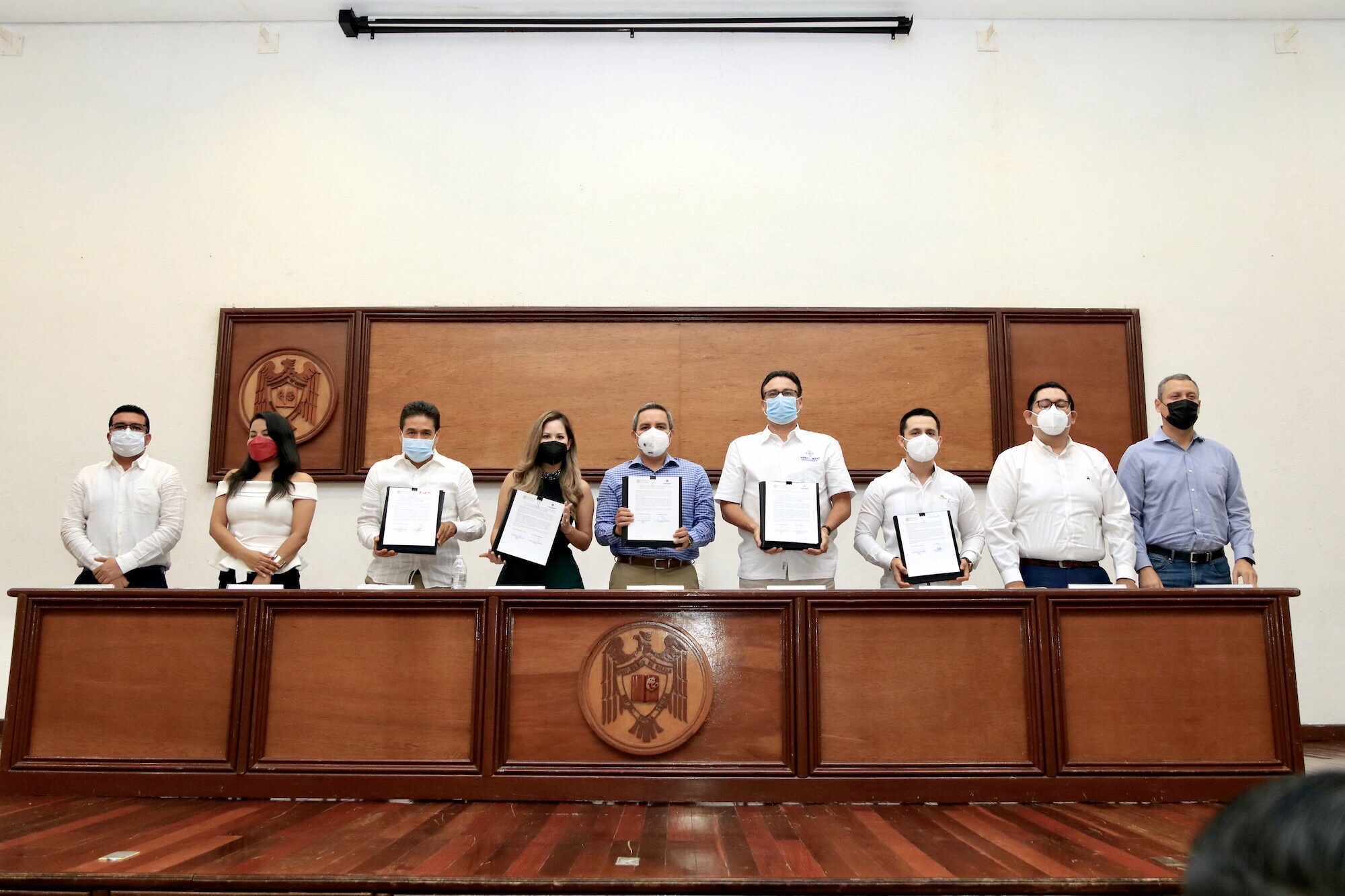 Firmaron los cuatro convenios simultáneos, por la UdeC, el rector Christian Jorge Torres Ortiz Zermeño; por la COPARMEX Manzanillo, Migdalia Arévalo González; por la CANACINTRA, Kevin Tello López; por la AIETIC,Ignacio Carrillo Alcocer, y por la APROCEMAAC, Miguel Silva Espinosa de los Monteros.