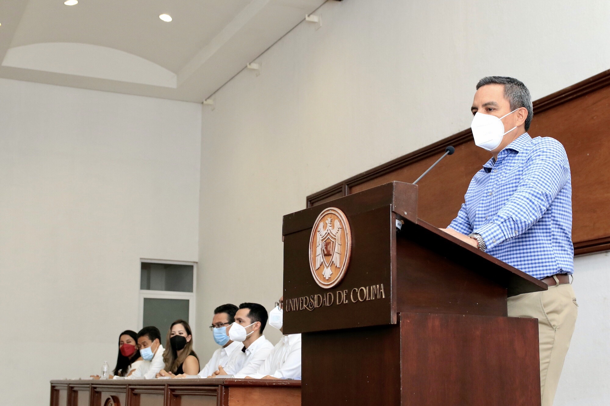 También estuvieron en el presídium Joel Nino, Secretario General de la Universidad; Ana María Gallardo Vázquez, delegada de Manzanillo; Fernando Sánchez Cárdenas, director general de Innovación y Cultura Emprendedora, José de Jesús Martínez Puga, director general de Servicio Social y Práctica Profesional y Jesús Omar Brizuela Padilla, director general de Educación Continua.