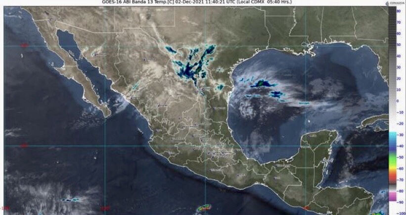 Pacífico Norte: Cielo despejado la mayor parte del día, sin lluvia en Sonora y Sinaloa. Temperaturas matutinas frías. Ambiente templado por la tarde. Viento de dirección variable de 15 a 30 km/h.