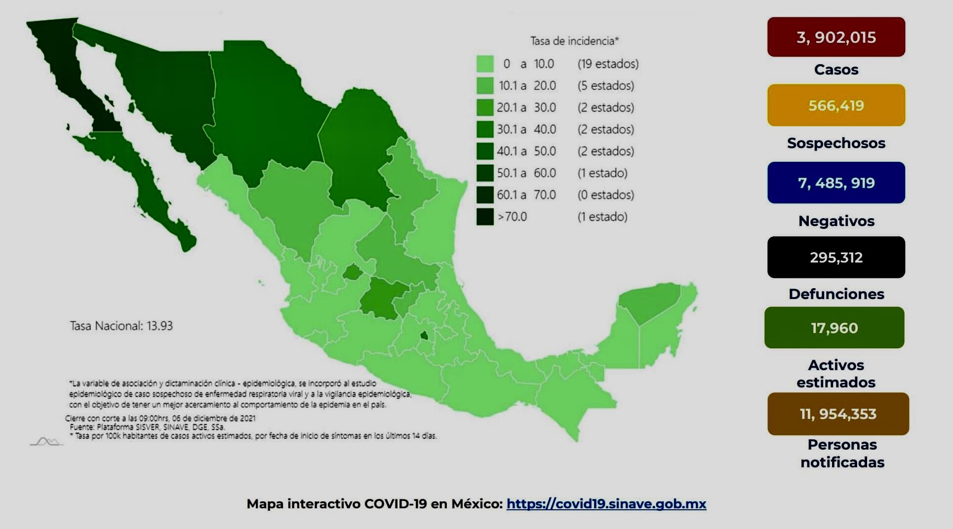 Respecto a las defunciones, Ciudad de México, el foco de la pandemia, acumula cerca del 18 % de todos los decesos a nivel nacional.