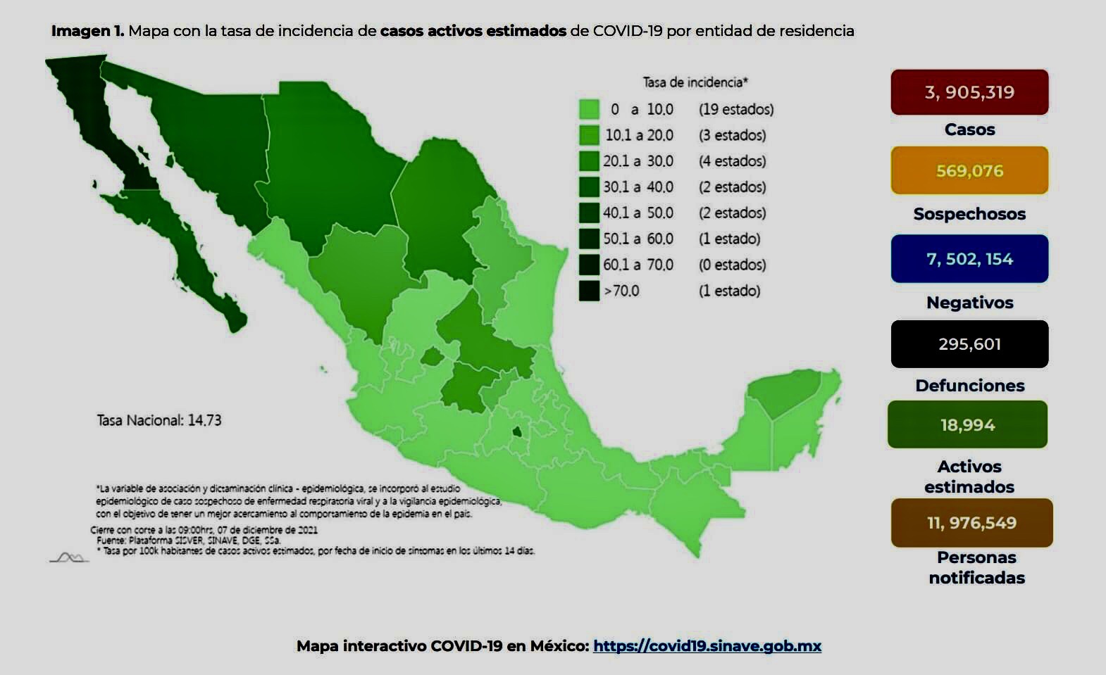 La Secretaría de Salud informó este martes que México suma 3 millones 905 mil 319 casos y 295 mil 601 muertes por Covid-19.
