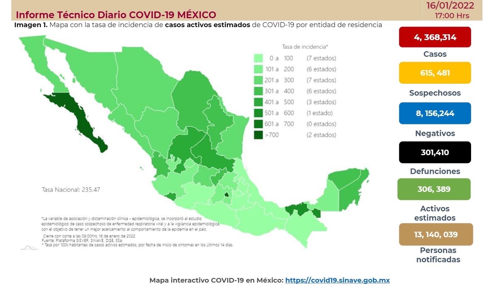 La Secretaría de Salud de México informó que el país registró este domingo 19 mil 132 nuevos contagios de COVID-19 para un total de 4 millones 368 mil 314 casos, además de 76 muertes para llegar a 301 mil 410 decesos totales.