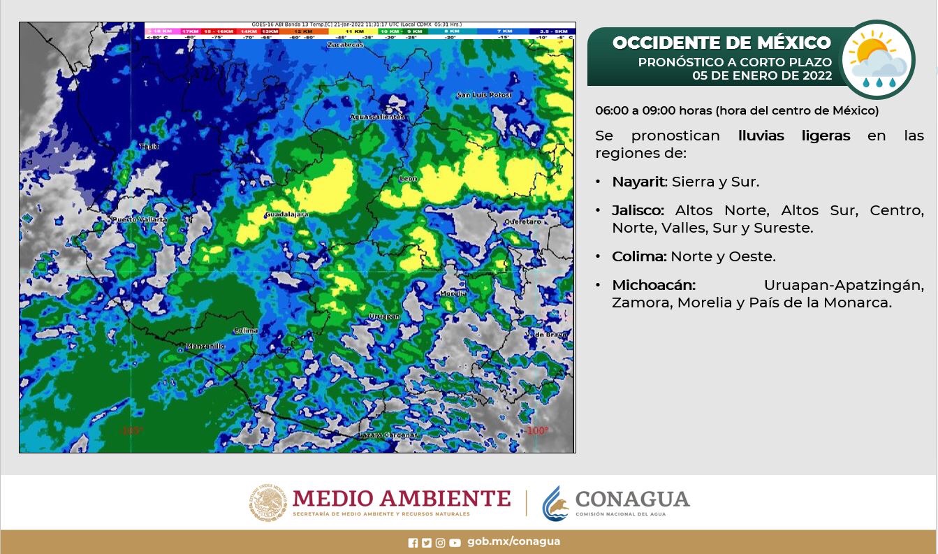 Lluvias ligeras para zonas de Colima. Publicado el 21 enero, 2022 por Análisis Colima Deja un comentario Lluvias ligeras en regiones de #Nayarit, #Jalisco, #Colima y #Michoacán durante las siguientes tres horas. Compártelo: Comparte en Facebook (Se abre en una ventana nueva) Facebook Compartir en X (Se abre en una ventana nueva) X Compartir en WhatsApp (Se abre en una ventana nueva) WhatsApp Imprimir (Se abre en una ventana nueva) Imprimir Enviar por correo electrónico un enlace a un amigo (Se abre en una ventana nueva) Correo electrónico Etiquetado con Reporte del clima Clima Edos y Municipios Nacional Noticias Noticias Colima