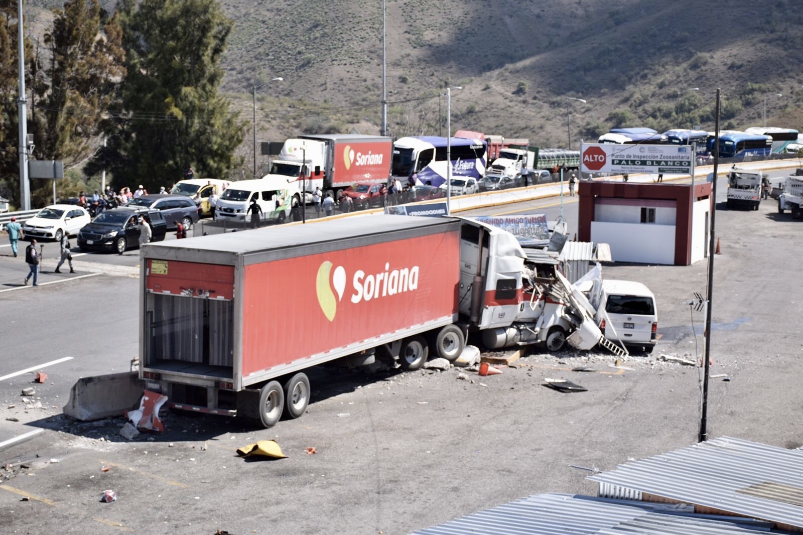 Un tráiler evadió el desvío y cruzó a toda velocidad la caseta, obligando a policías a romper su valla.