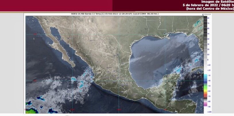 Golfo de México: Cielo nublado la mayor parte del día con lluvias puntuales torrenciales en Tabasco y lluvias puntuales intensas en Veracruz (sur). Bancos de niebla en gran parte de la región. Ambiente de frío a fresco durante la mañana y ambiente de templado a cálido por la tarde. Evento de “Norte” muy fuerte con rachas de 70 a 90 km/h en la costa centro y sur de Veracruz; con rachas de 60 a 70 km/h en el litoral de Tamaulipas, Veracruz (norte), y Tabasco; así como oleaje de 3 a 5 metros de altura en Veracruz y Tabasco, además de 1 a 3 metros en Tamaulipas.