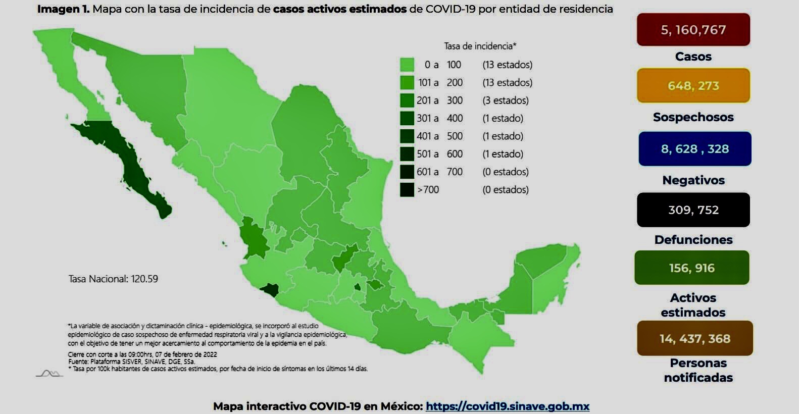 La Secretaría de Salud informó este lunes que México suma 5 millones 160 mil 767 casos y 309 mil 752 muertes por Covid-19
