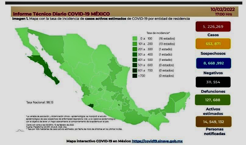 La Secretaría de Salud informó este jueves que México suma 5 millones 226 mil 269 casos y 311 mil 554 muertes por COVID-19.