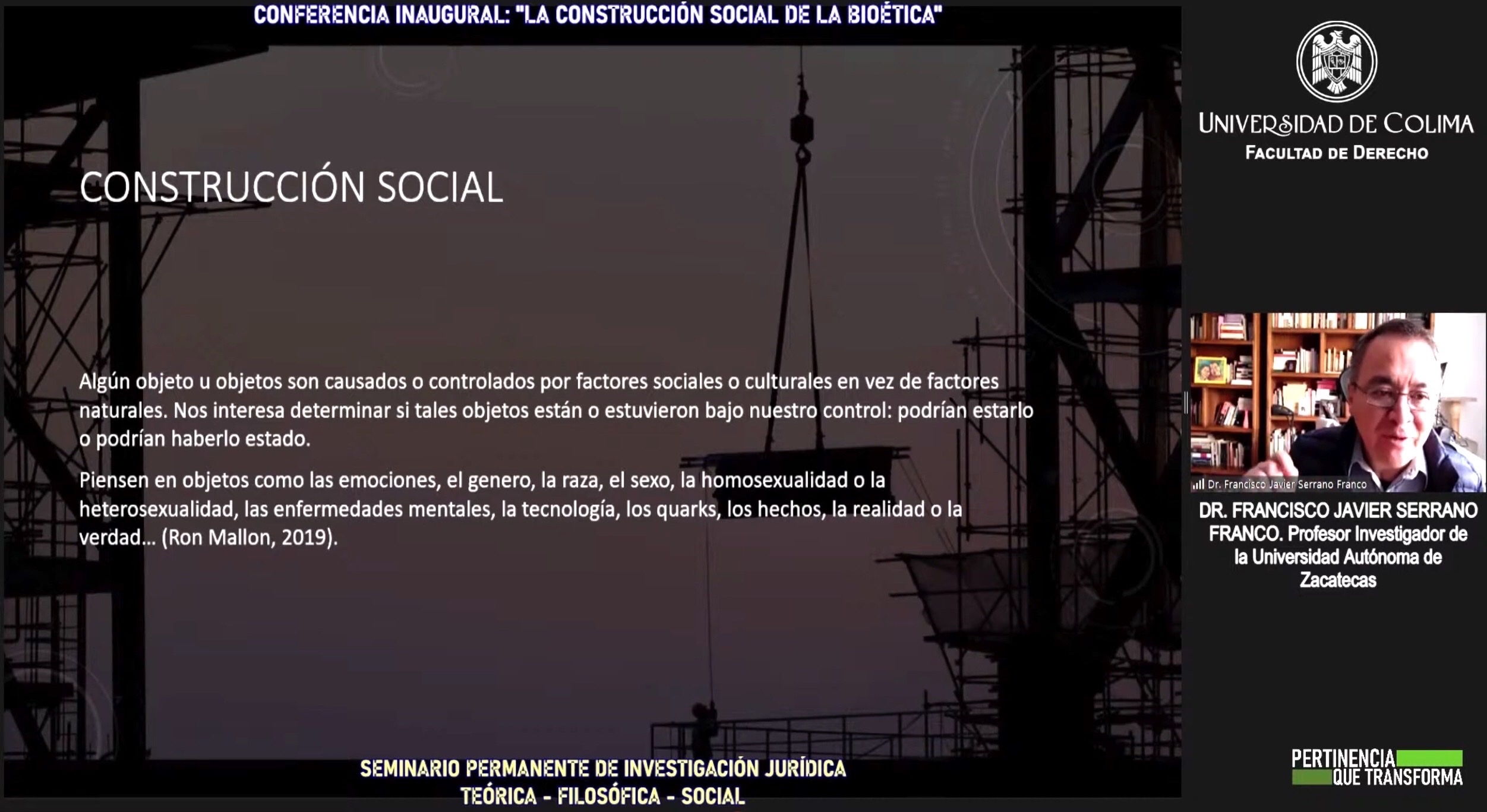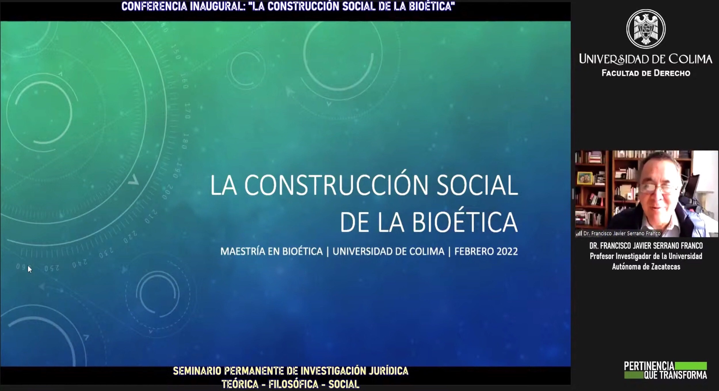La bioética, de acuerdo con el académico Francisco Serrano Franco, de la Universidad Autónoma de Zacatecas, surge a partir de ciertos problemas y necesidades normativas que enfrenta la sociedad, según compartió en la videoconferencia “Construcción social de la bioética”, que dictó como parte de la Maestría en Bioética que ofrecen tres facultades de la Universidad de Colima: Filosofía, Derecho y Medicina.