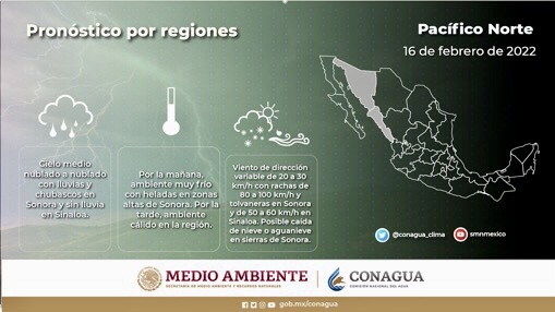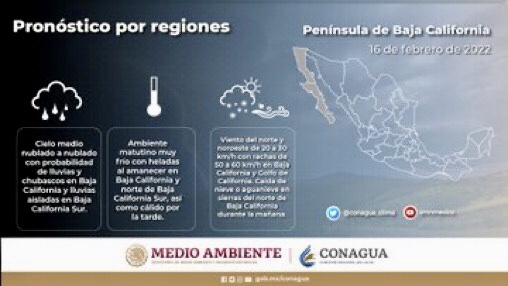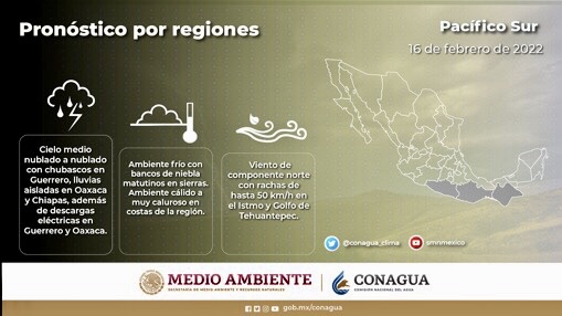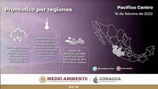 Consulta en los gráficos las condiciones del tiempo que predominarán hoy en las regiones del Pacífico norte, centro y sur, así como en la Península de Baja California.