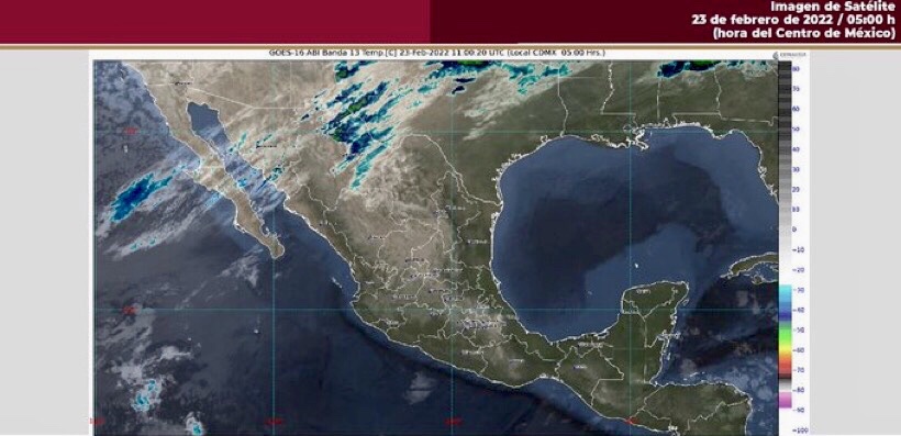 Pacífico Norte: Cielo medio nublado con probabilidad de chubascos en Sonora y sin lluvia en Sinaloa. Ambiente muy frío a gélido con heladas al amanecer en zonas altas de Sonora. Por la tarde, ambiente cálido a caluroso en Sinaloa. Viento oeste y suroeste de 20 a 30 km/h con rachas de 90 a 110 km/h y tolvaneras en Sonora.