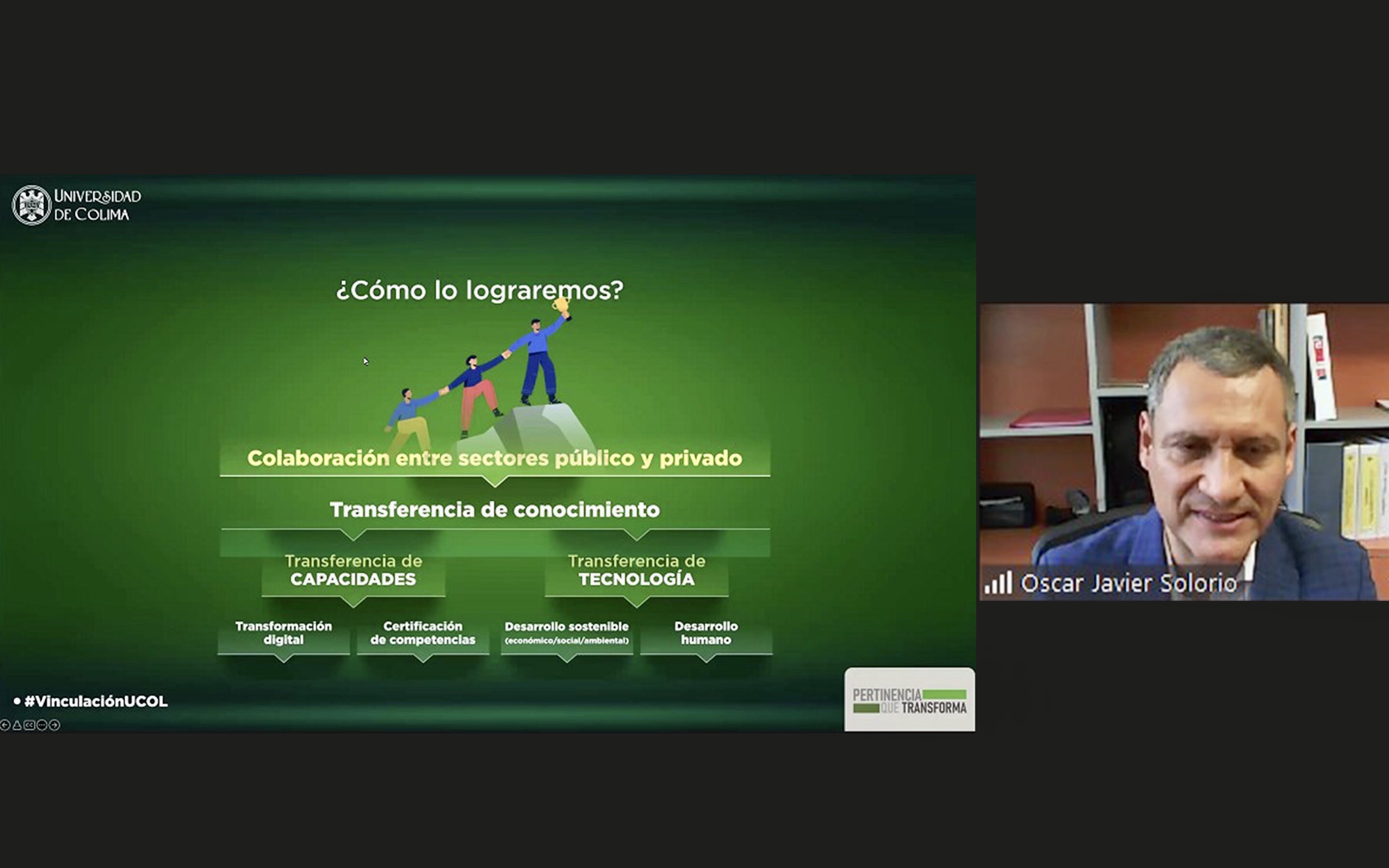 Por último, Javier Solorio, director general de Vinculación de la UdeC, aseguró que si se busca que la institución participe de la llamada economía del conocimiento, se deben escuchar las oportunidades que se presentan y no las desventajas que pudieran tenerse en el estado, “porque los reclutadores quieren que además de que los jóvenes sepan lo que les enseñamos, tengan habilidades nuevas, y también el inglés; además, podemos convertir a Colima en una de la Mecas de trabajo, porque si no lo hacemos nosotros, alguien más lo va a hacer”.