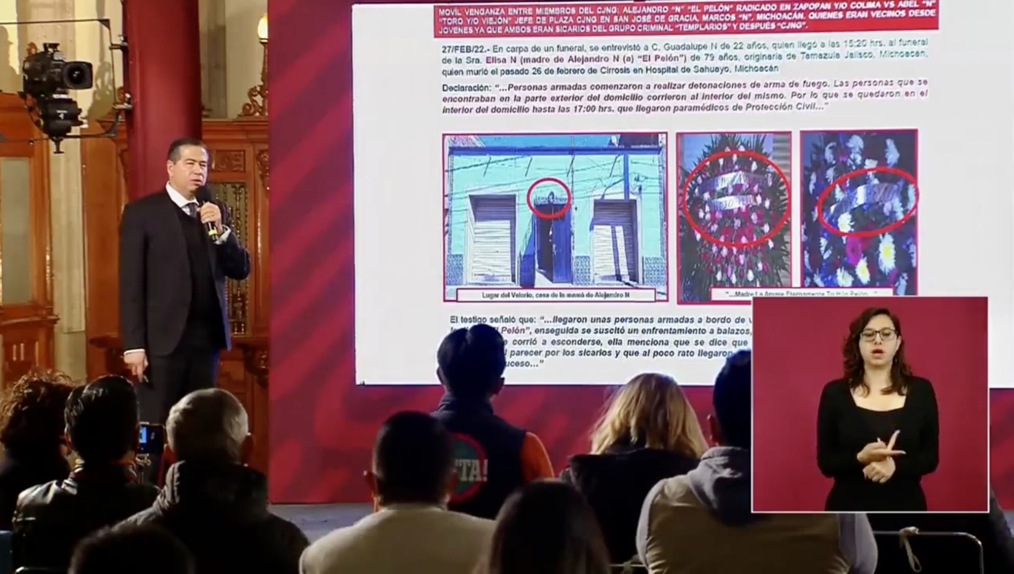 El posible móvil de la masacre en un velorio el pasado domingo en San José de Gracia, Michoacán, fue una venganza entre ‘El Pelón’ y ‘El Viejón’, presuntos miembros del CJNG, señaló el subsecretario de Seguridad, Ricardo Mejía.