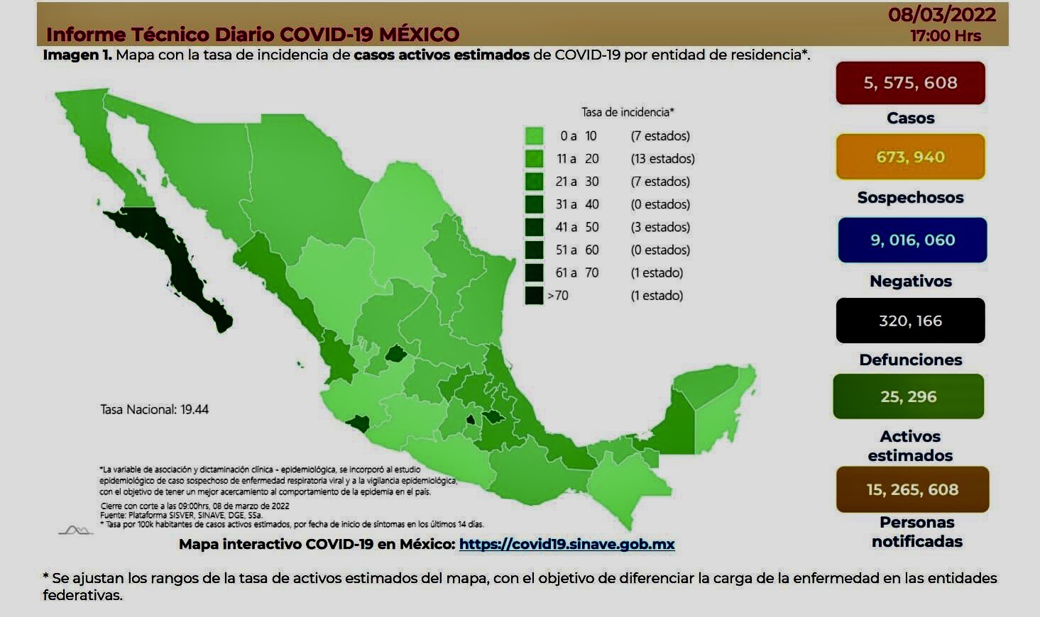 La Secretaría de Salud informó este martes que Méxicosuma 5 millones 575 mil 608 casos y 320 mil 166 muertes por COVID-19.
