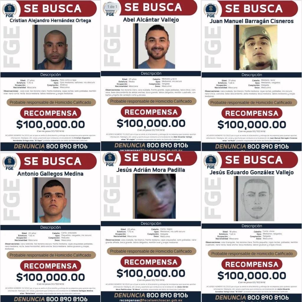 Para agilizar su captura se ofrece una recompensa de 100 mil pesos por información que lleve a la captura de cada uno de los presuntos implicados, 600 mil pesos en total.