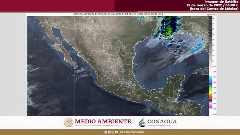Golfo de México: Cielo nublado con probabilidad de lluvias puntuales muy fuertes en Tabasco, fuertes en Veracruz y sin lluvia en Tamaulipas. Ambiente matutino fresco. Temperaturas frías y bancos de niebla al amanecer en zonas altas. Ambiente templado a cálido por la tarde. Viento de componente norte de 20 a 30 km/h en la región, con rachas de 50 a 60 km/h en costas de Tamaulipas y Veracruz, además de rachas de 40 a 50 km/h en costas de Tabasco.