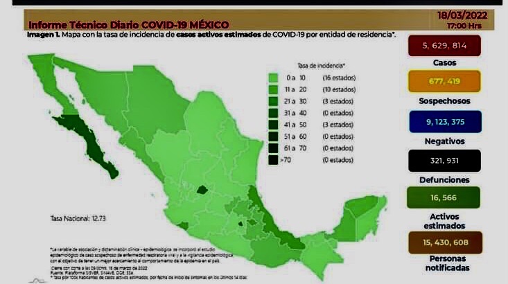 La Secretaría de Salud informó este viernes que Mexico suma 5 millones 629 mil 814 casos y 321 mil 931 muertes por COVID-19.