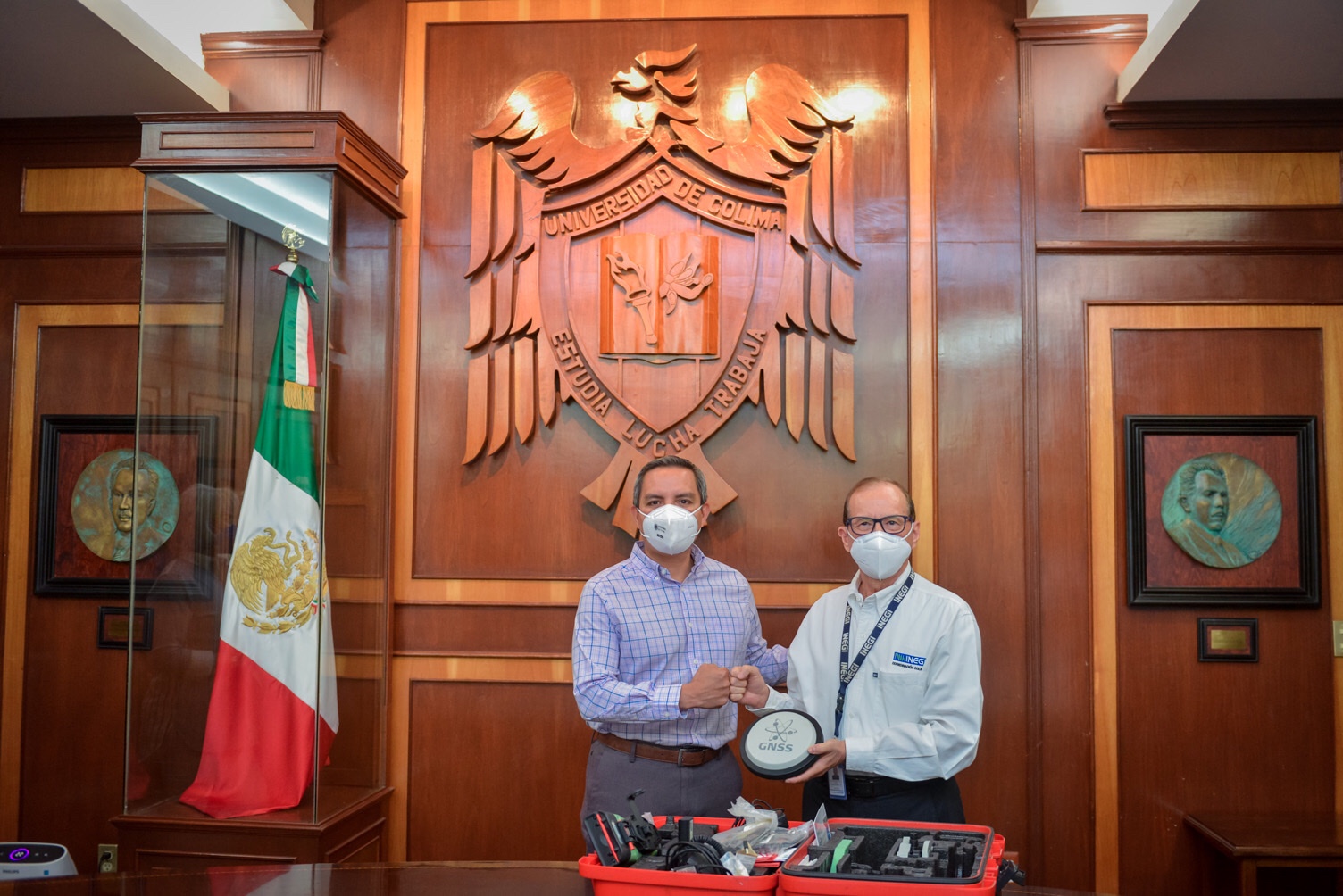 Este miércoles, el Instituto Nacional de Estadística y Geografía (INEGI) donó a la Universidad de Colima cuatro equipos especializados de medición GNSS (Sistema Satelital Global de Navegación), que serán de gran ayuda para que las y los estudiantes de las facultades de Ingeniería Civil (FIC) y Ciencias Marinas (FACIMAR) tengan una formación más completa y actualizada.