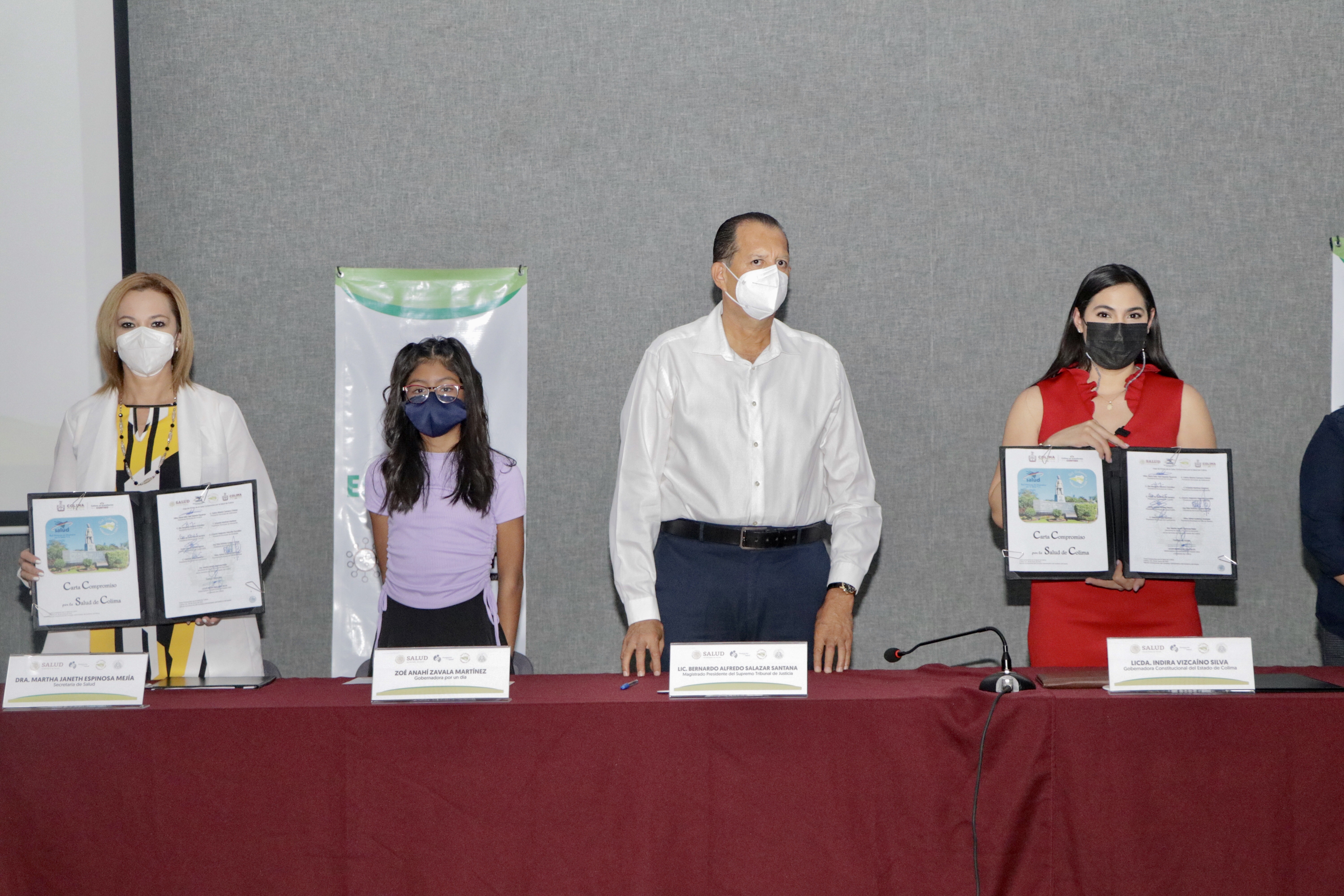 En representación de los Poderes Legislativo y Judicial, acudieron la diputada Myriam Gudiño Espíndola y el magistrado José Alfredo Jiménez Carrillo, acto en el que se firmó la Carta Compromiso por la Salud de Colima, con la que las y los alcaldes de la entidad se comprometen a dar prioridad a la salud de la población. También estuvieron las ganadoras del programa “Gobernadora por un día”, Zoe Anahí Zavala Castillo, Ana Rosa Vargas Hernández y Jaqueline Cabrera González.