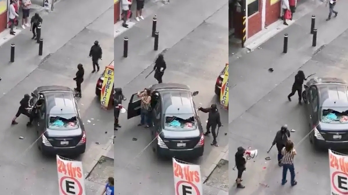 En respuesta las encapuchadas tomaron tubos de metal para golpear el automóvil con la mujer dentro, quien tras varios segundos salió del mismo.