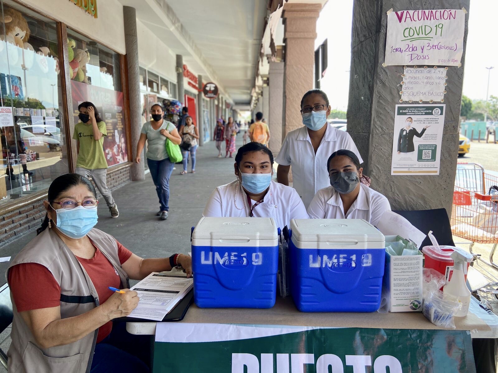 El Instituto Mexicano del Seguro Social (IMSS) en Colima, informa que durante el mes de abril, junto con el Sector Salud federal, se lleva a cabo una campaña intensiva de vacunación contra COVID-19 en diversas Unidades Médicas del Instituto en todo el país, con el objetivo de vacunar a la población mayor de 18 años que no haya recibido alguna dosis contra esta enfermedad, aquellas que requieran completar su esquema o recibir el refuerzo de la tercera dosis.