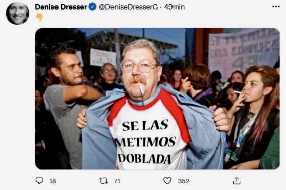 El mensaje de Dresser fue acompañada por una foto del director del FCE, quien viste una playera que dice: “Se las metimos doblada”.