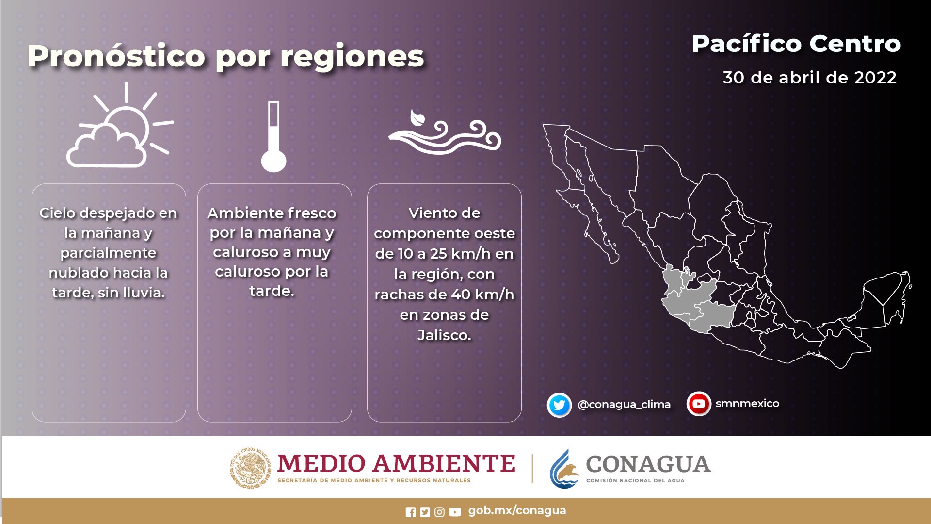 Consulta aquí las condiciones del tiempo que predominarán este sábado en las regiones del Pacífico norte, centro y sur, así como en la Península de Baja California.